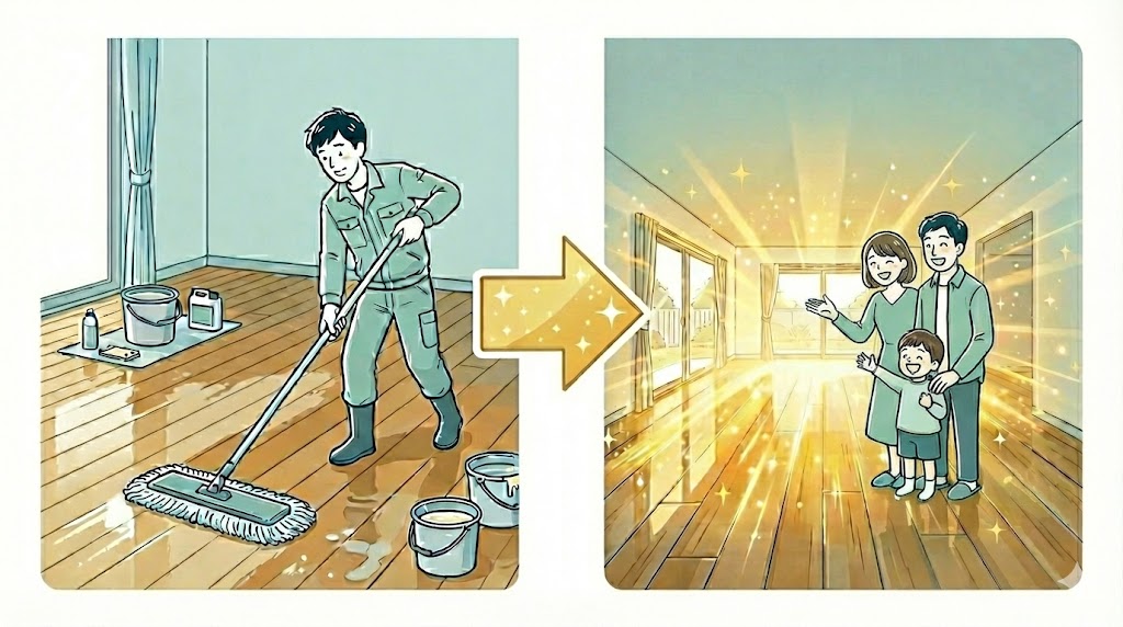 「フロアコーティングは贅沢品」と思っていませんか? 700名の方が施工を決めたのは、それが時間を買う投資だと気づいたからです。