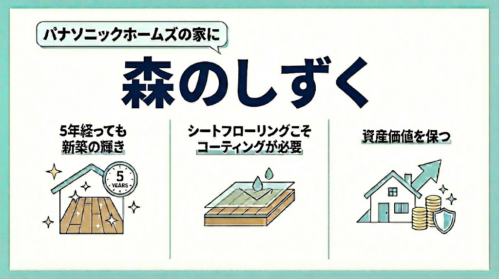 パナソニックホームズ(以下パナホーム)で家を建てる際、避けて通れないのが「フロアコーティングをどうするか」という悩みです。私も、インテリア打ち合わせの段階で提携業者さんの案内を受け、とても迷いました。