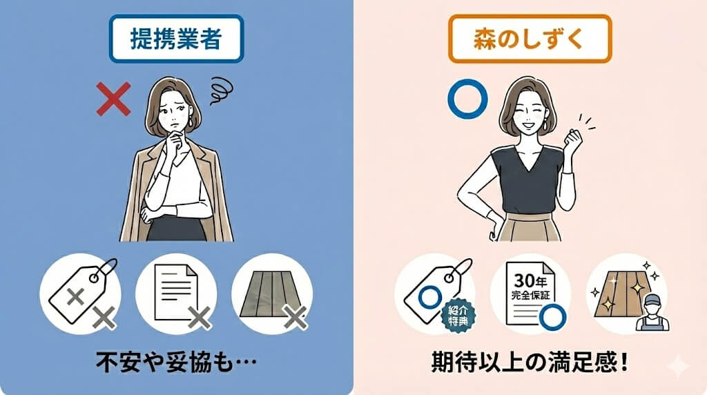 なぜこれほど多くの方が、提携業者ではなく私の紹介で「森のしずく」を選んだのか。その理由は、以下の5つのポイントに集約されます。